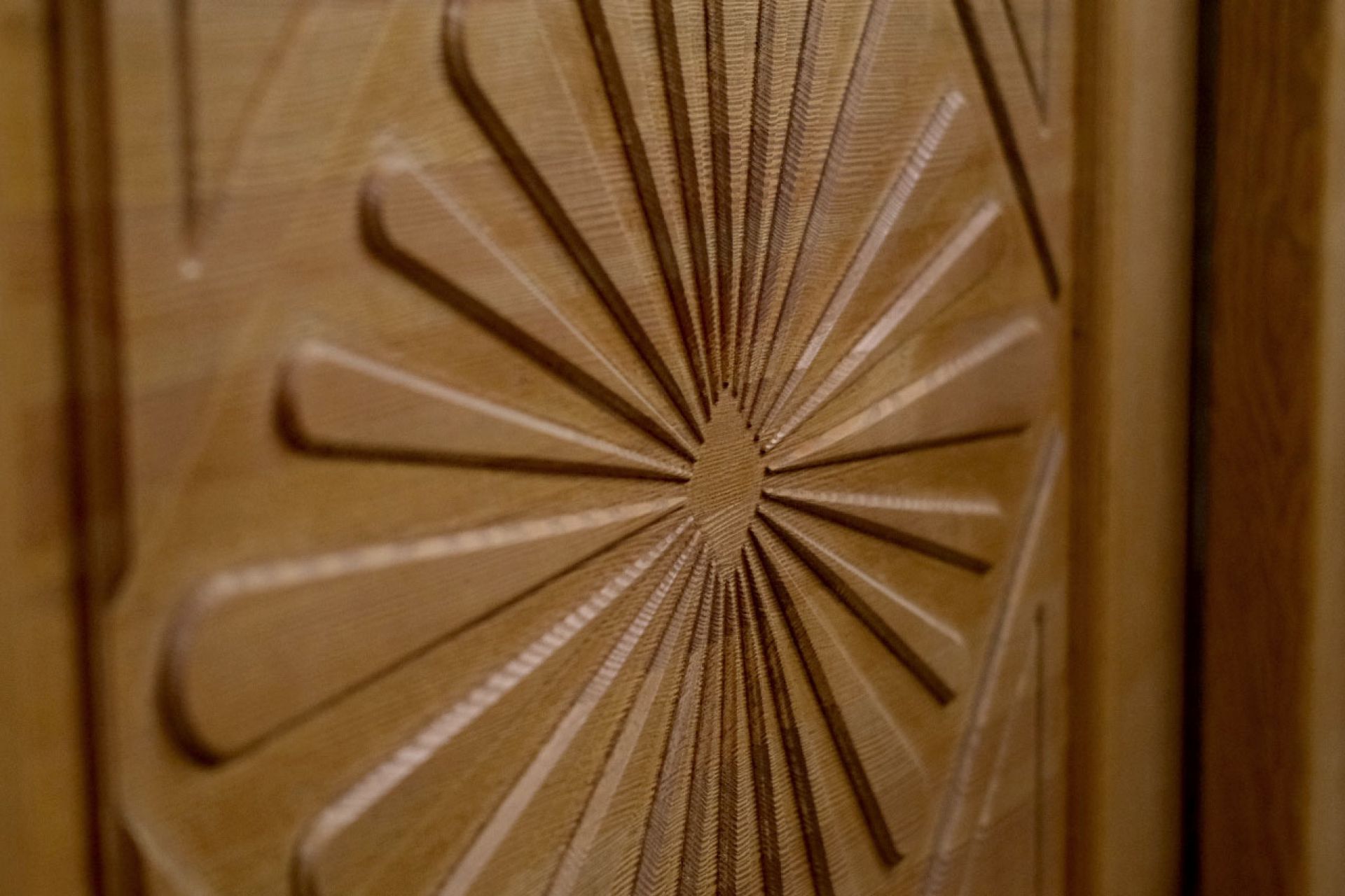 The sun element has been incorporated into door designs since the 15th and 16th centuries, symbolizing life, energy, and the heavens. The specific design of the Bergen model, characterized by its open upper section with handcrafted ornamented grilles, emerged in the late 19th century. It was crafted to provide an elegant entrance to countryside houses and villas.