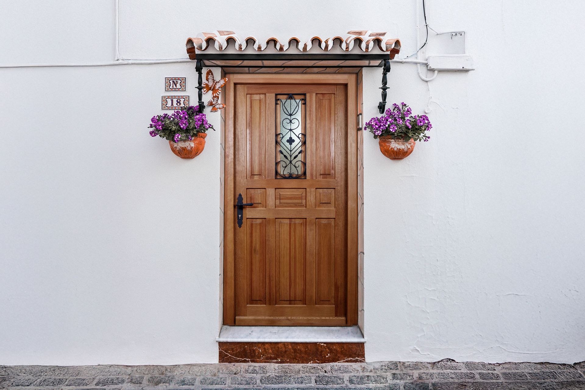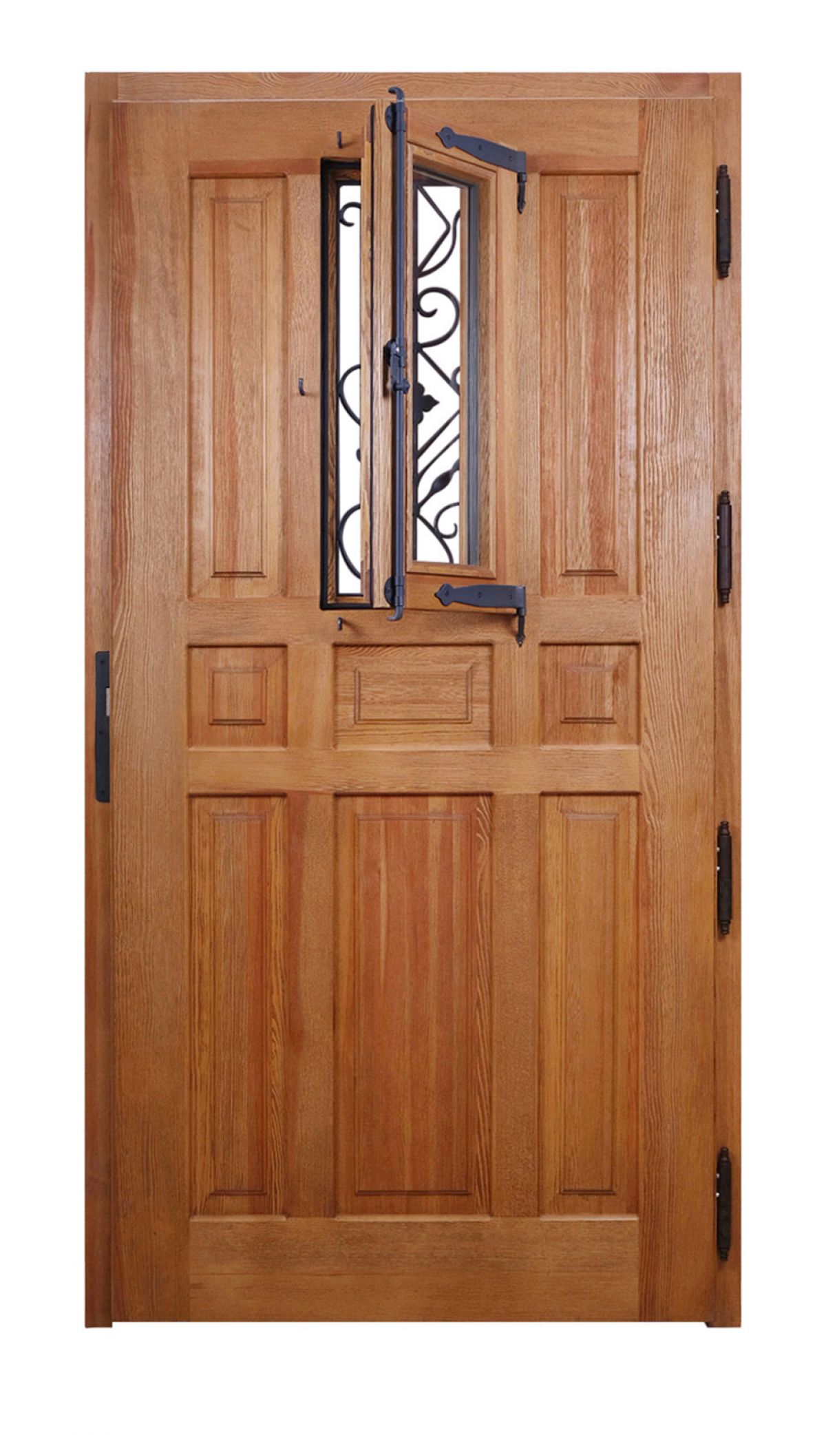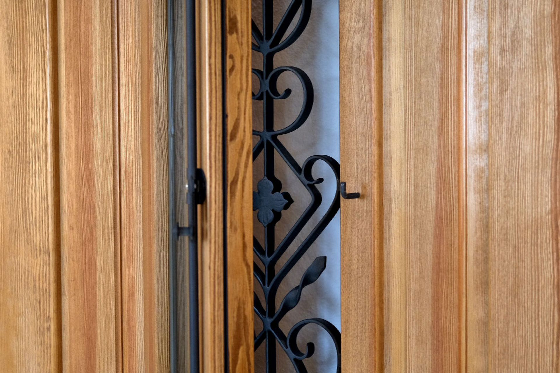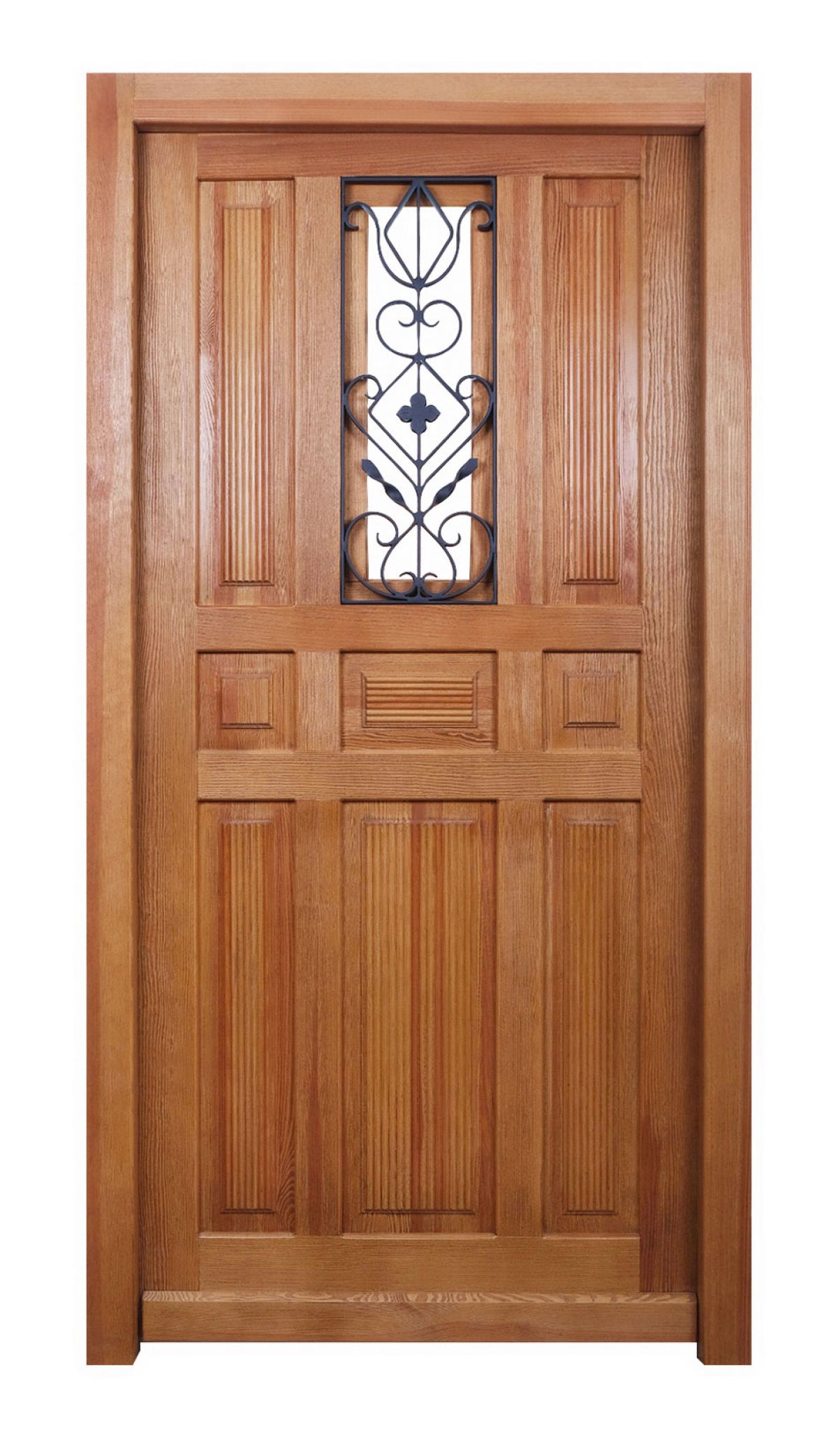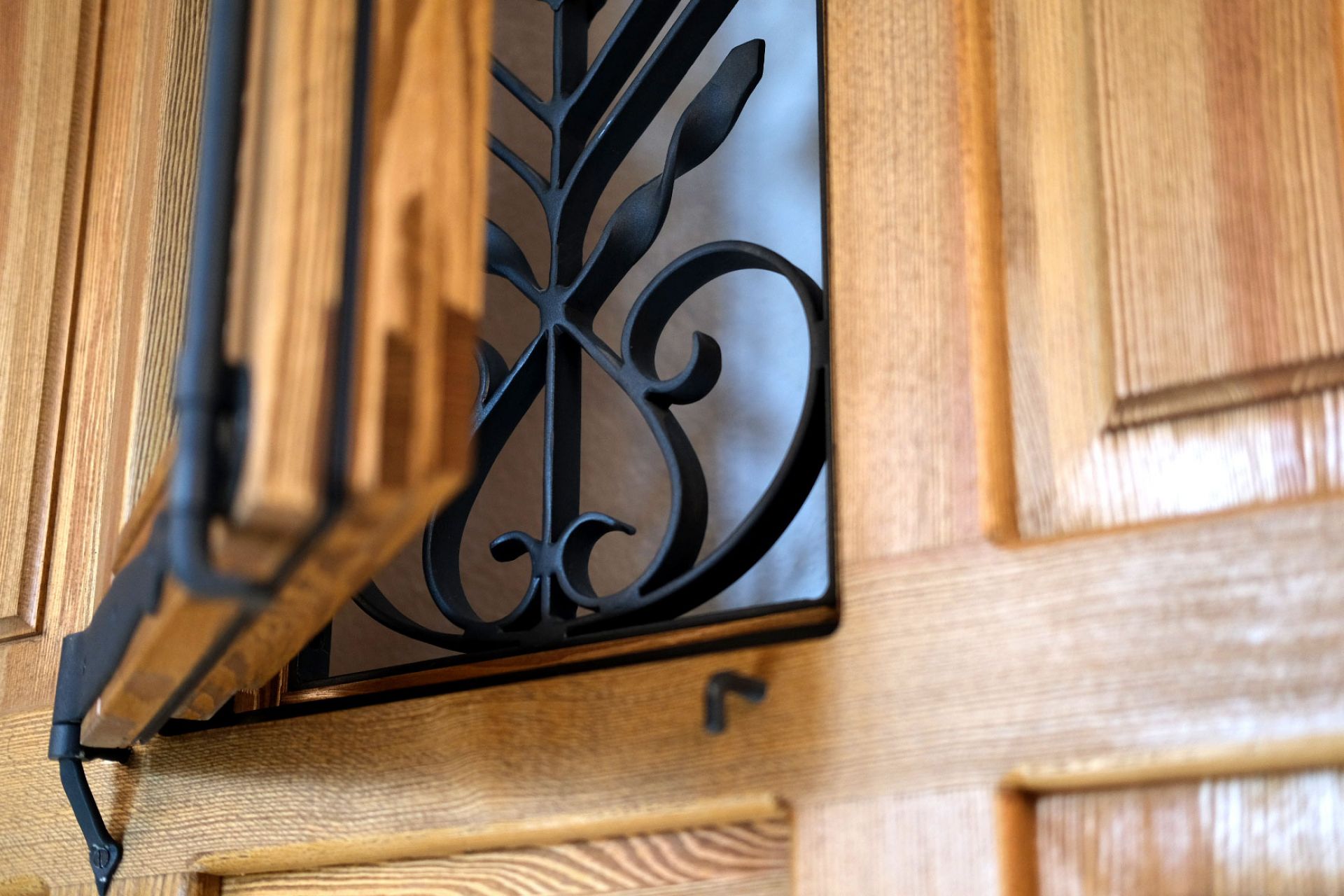 Found throughout the Mediterranean region, the classic style of the Portofino door traces its origins to the early 19th century. The elegant design combines simple linear patterns with geometric panels and a wrought iron window grille featuring organic plant designs.